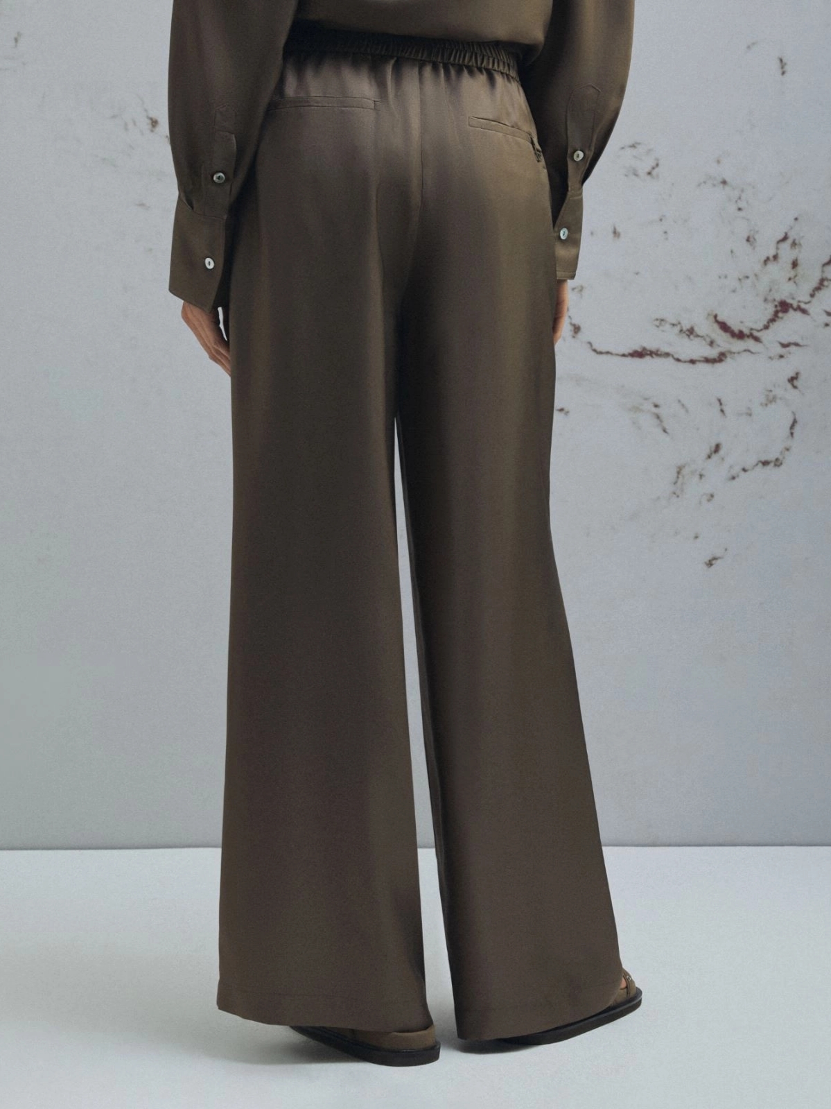 Μεταξωτό παντελόνι Marella με λάστιχο στη μέση, πλαϊνες τσέπες στη ραφή και τσέπες πίσω με μεταλλική λεπτομέρεια D-ring.
