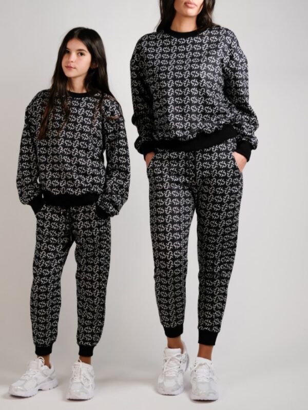 Σετ φόρμες 9nine, με all over print λογότυπο και μαύρο λάστιχο ριπ στις μανσέτες και στα πόδια. Στρογγυλή λαιμόκοψη.