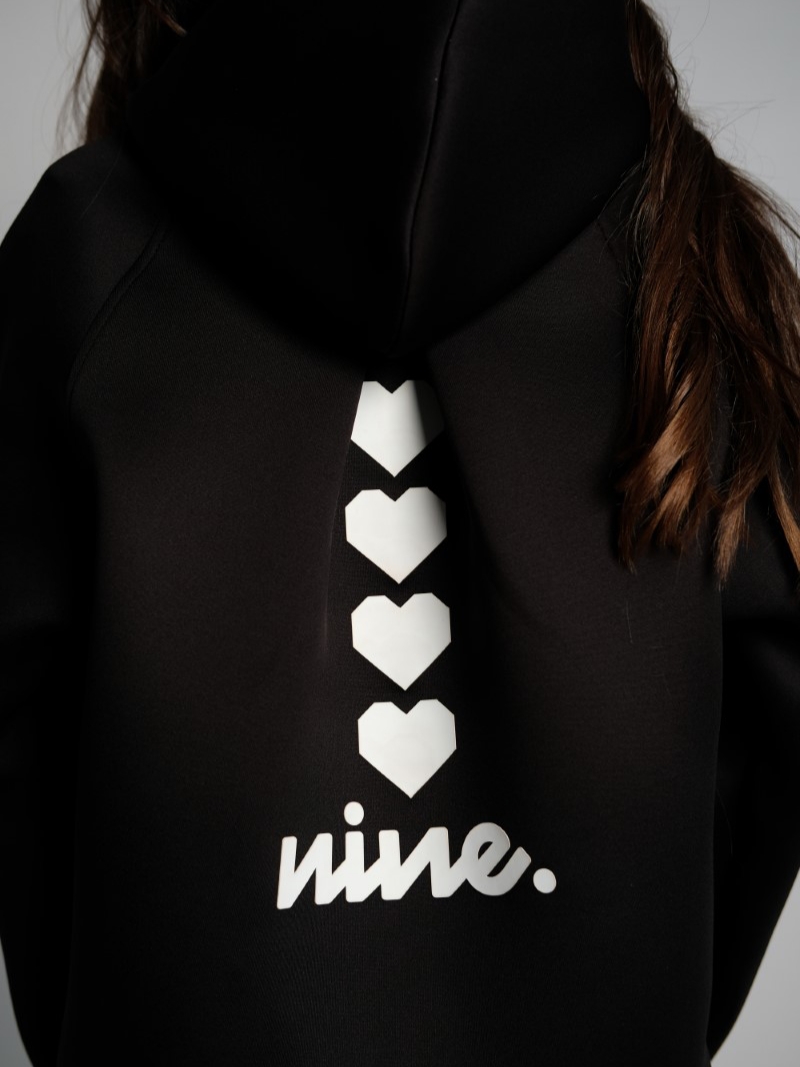 Φούτερ scuba 9NINE με ανάγλυφα τυπώματα μπροστά, πίσω και πάνω απο τις μανσέτες. Κουφόπιετα στην πλάτη και κουκούλα.