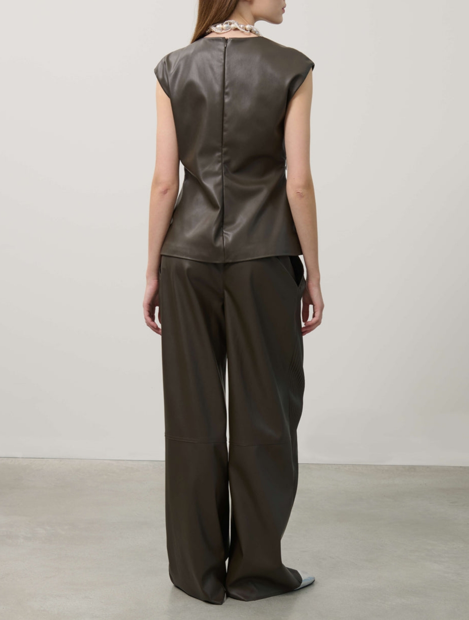 Πλισέ παντελόνι Beatrice απο δερματίνη σε ίσια γραμμή.