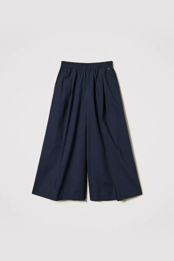 Cropped παντελόνι Actitude σε φαρδιά γραμμή με πιέτες και λάστιχο στη μέση. Διαθέτει τσέπες στα πλαϊνά και εξωτερικές τσέπες πίσω.