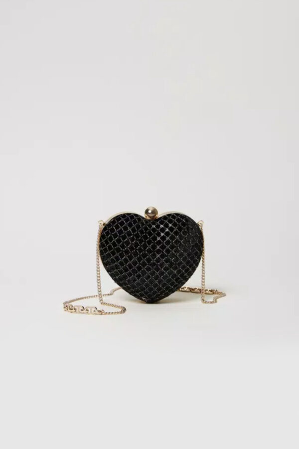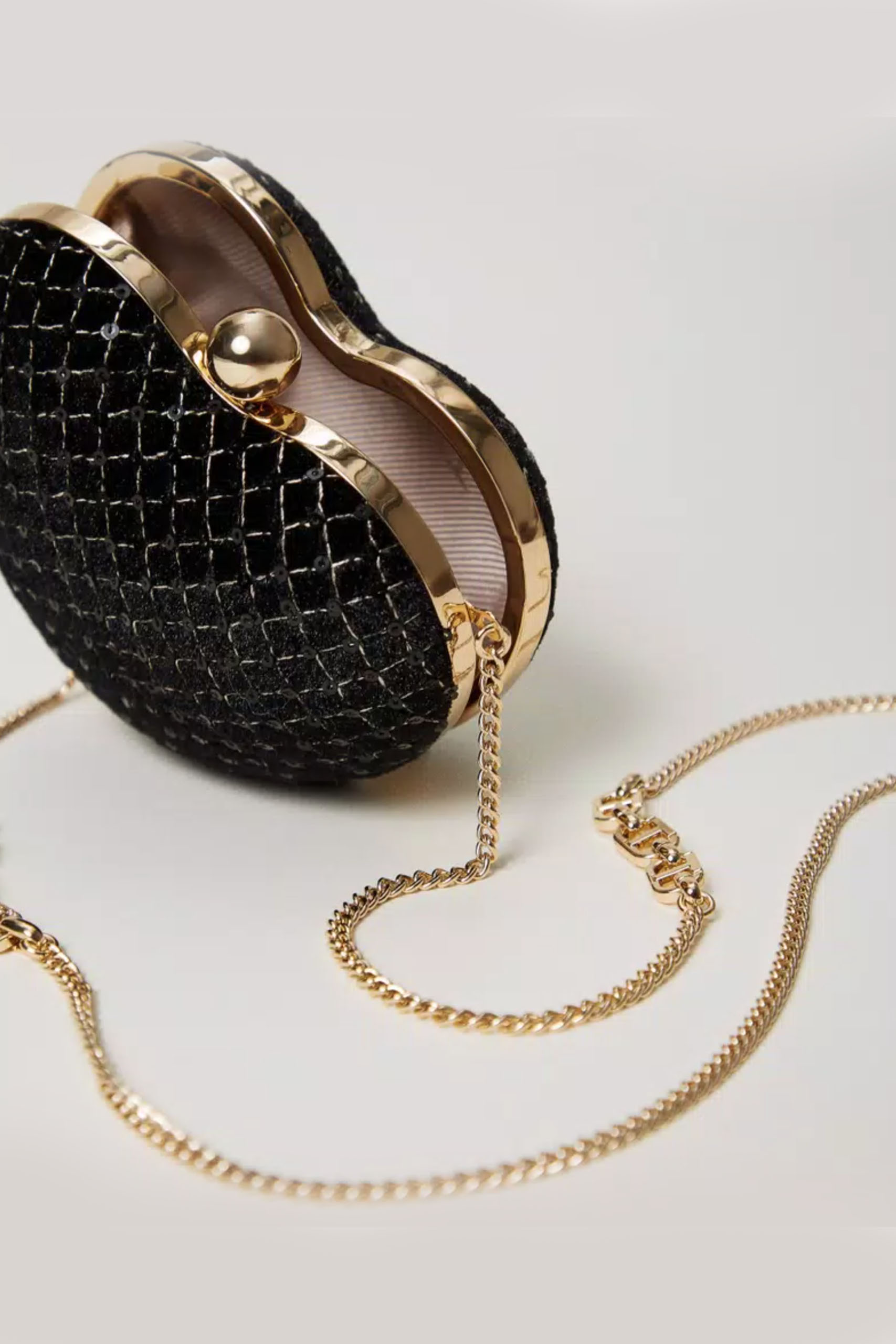 Τσαντάκι Twinset σε σχήμα καρδιάς, από βελούδινο ύφασμα κεντημένο με παγιέτα και χρυσές μεταλλικές λεπτομέρειες. Εσωτερικά ενιαίος χώρος.