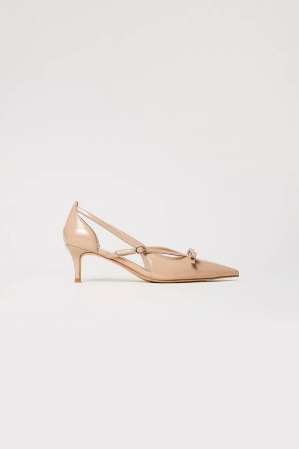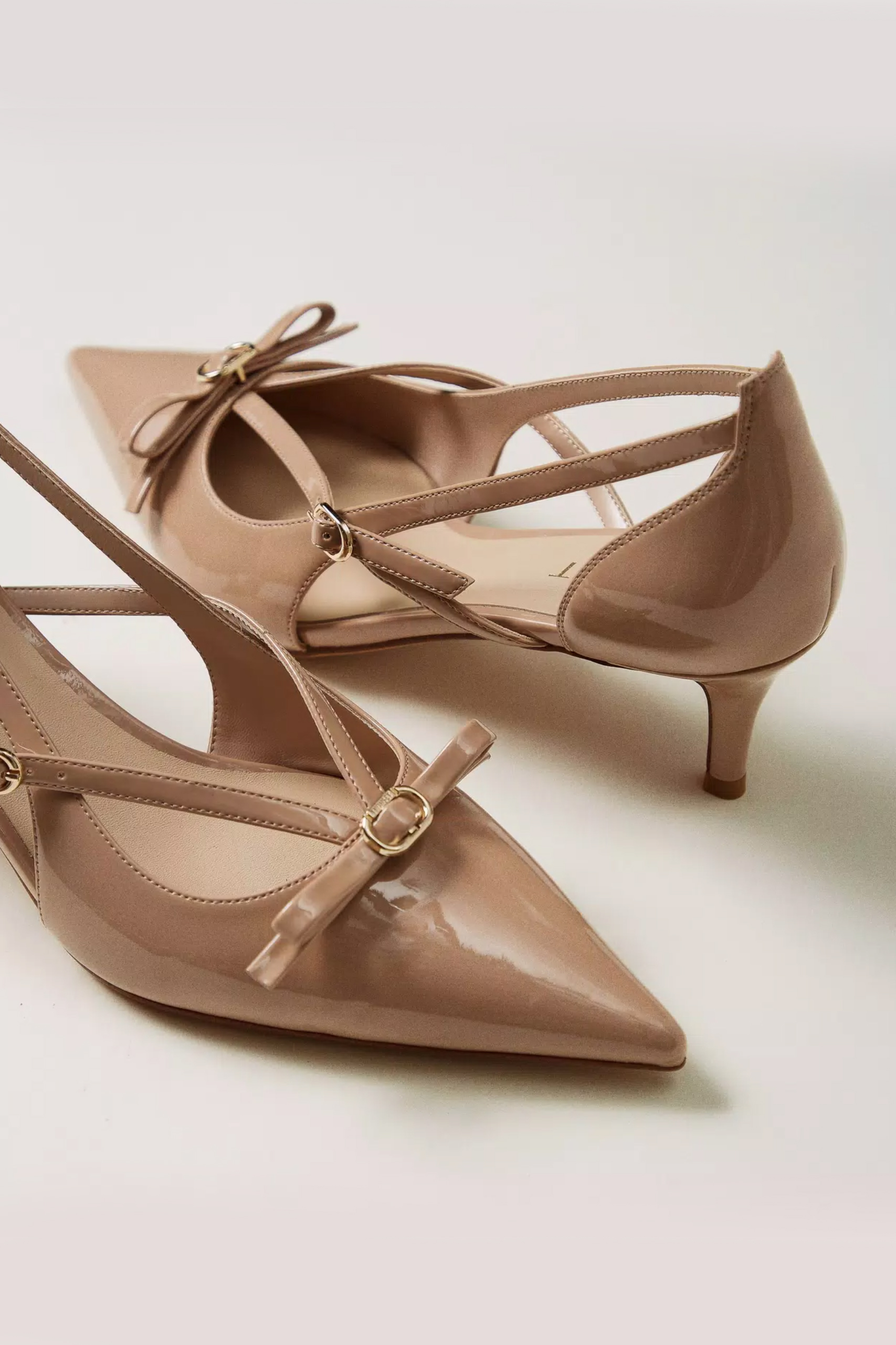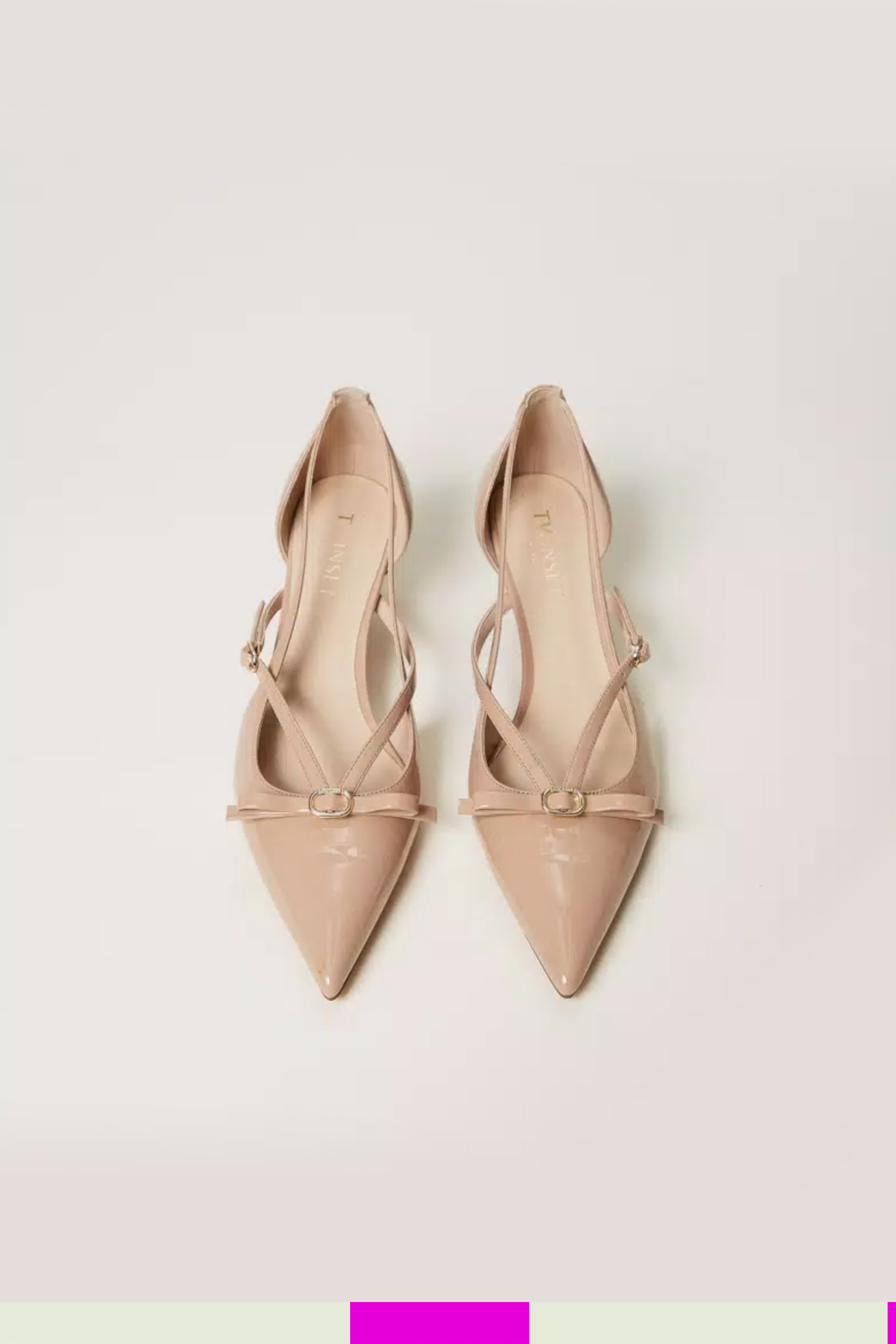 Γόβα Twinset από λουστρίν οικολογικό δέρμα, με ανοιχτά πλαϊνά και διακοσμητικό φιόγκο.