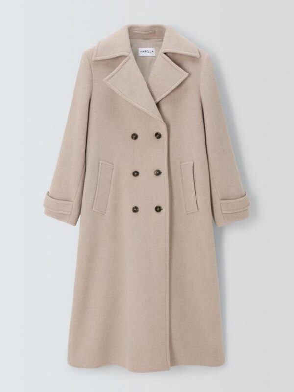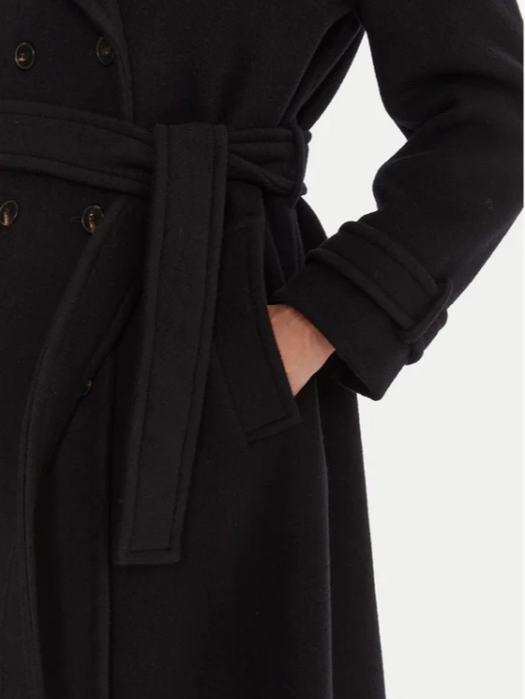 Μακρύ φοδραρισμένο παλτό Marella με σταυρωτό κούμπωμα και ζώνη. Τσέπες στα πλαϊνά.