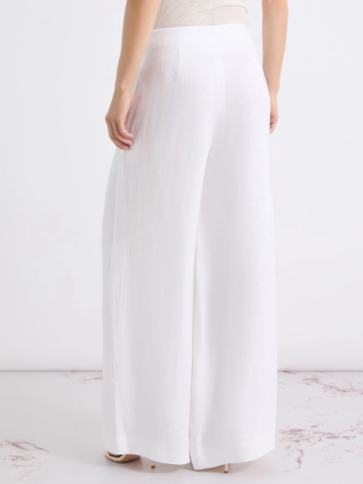 Λινό παντελόνι Marella με πλέξη, κλείσιμο με φερμουάρ και κουμπί στο πλάι. Λοξές πλαϊνές τσέπες.