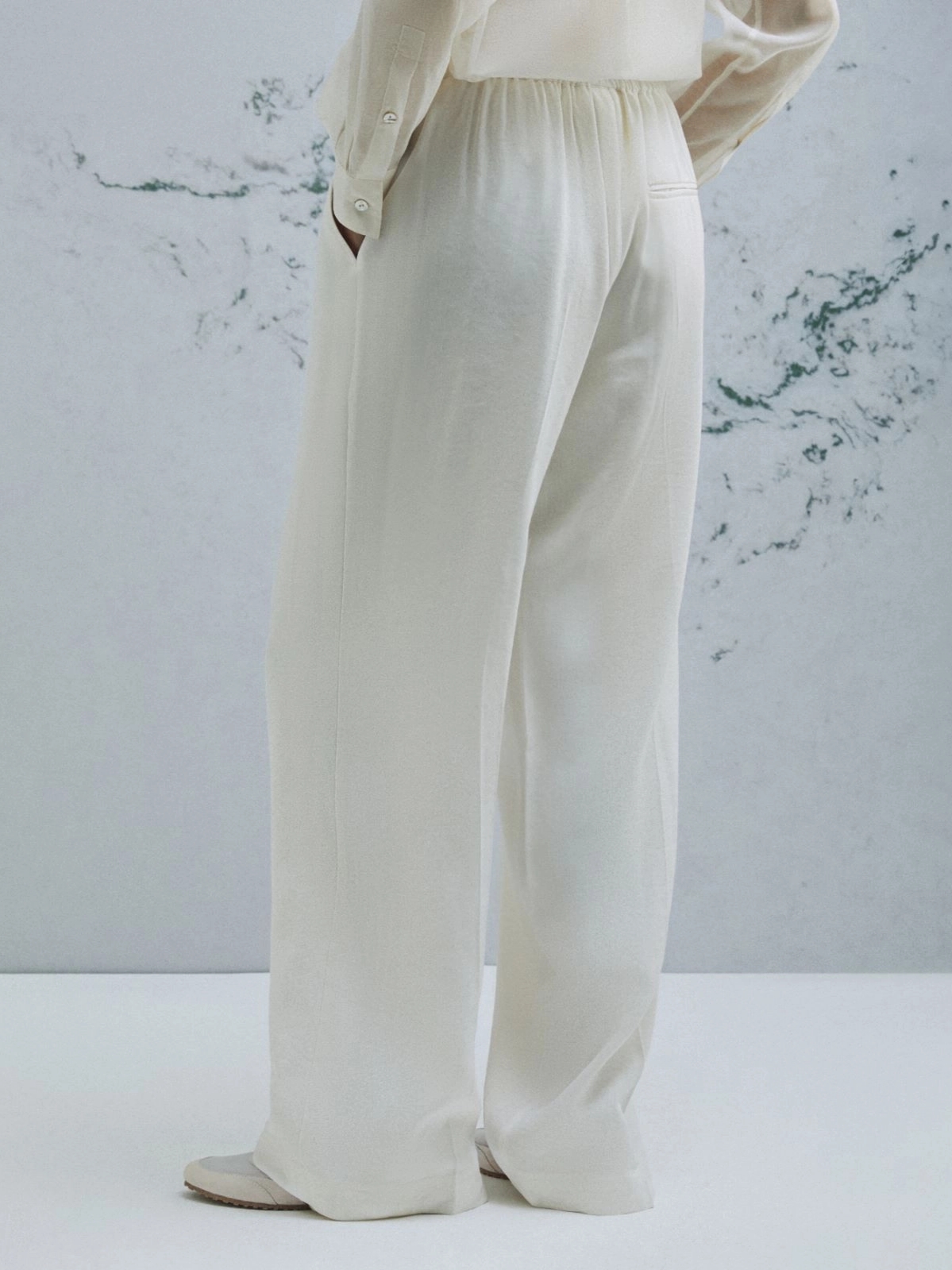 Παντελόνι Marella απο ελαστικό λινό με βισκόζη. Ελαστική μέση με κορδόνι μπροστά. Τσέπες στα πλαϊνά και μονή τσέπη πίσω. Κανονική εφαρμογή.