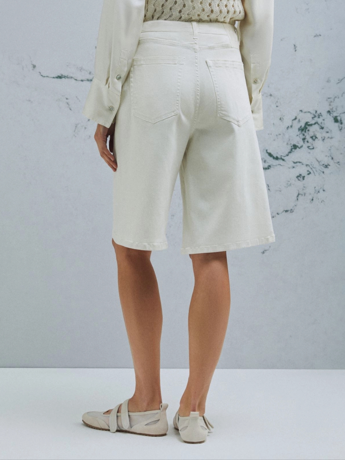 Βαμβακερή βερμούδα Marella denim με ελαστικότητα. Πεντάτσεπο με θηλιές για ζώνη. Κορδόνι περίσφιξης στη μέση. Κανονική εφαρμογή.