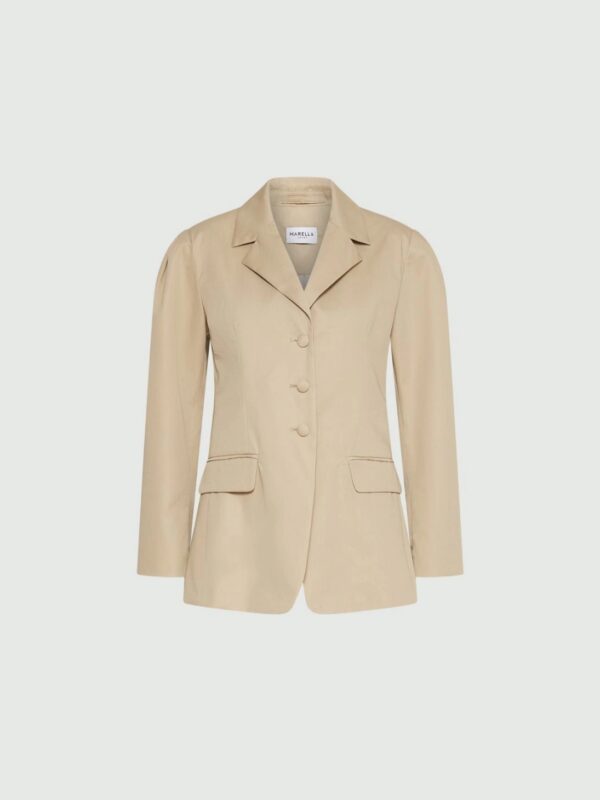 Σακάκι μεσάτο Marella απο βαμβακερή καπαρντίνα με μακρυά μανίκια και ριχτούς ώμους. Κλείσιμο με καλυμμένα κουμπιά και τσέπες με καπάκι. Στενή εφαρμογή.