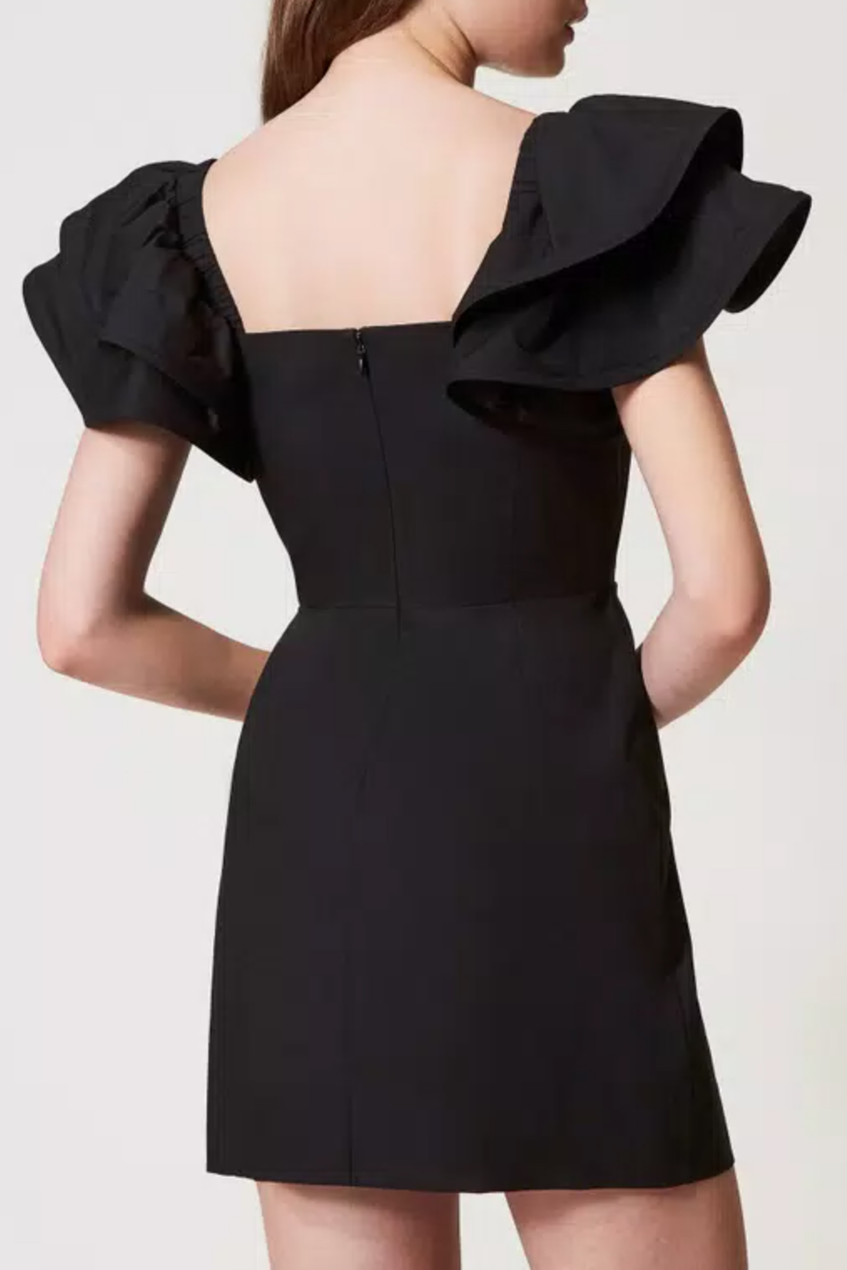Φόρεμα Actitude από βαμβακερό ύφασμα, βολάν στους ώμους με ελαστική εφαρμογή στην τιράντα και κούμπωμα με κρυφό φερμουάρ στην πλάτη.