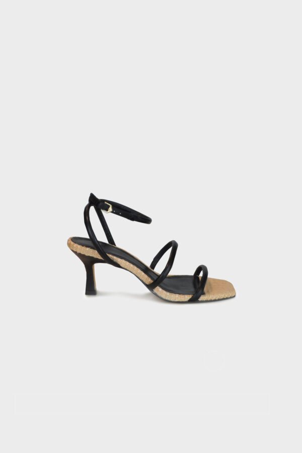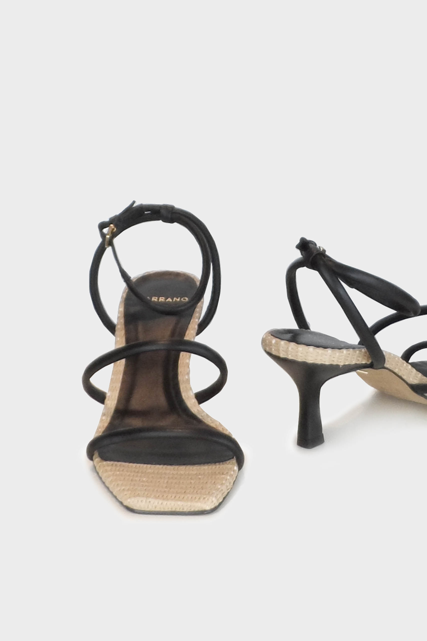Πέδιλο Carrano από γνήσιο δέρμα, με λεπτομέρειες από ψάθα, λεπτό τακούνι και δέσιμο με μπαρέτα στον αστράγαλο.