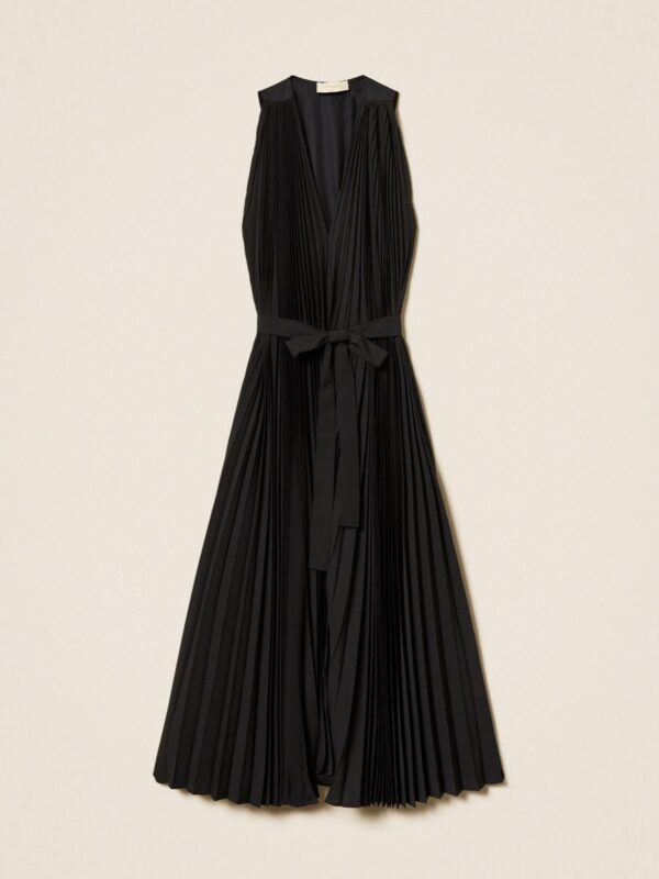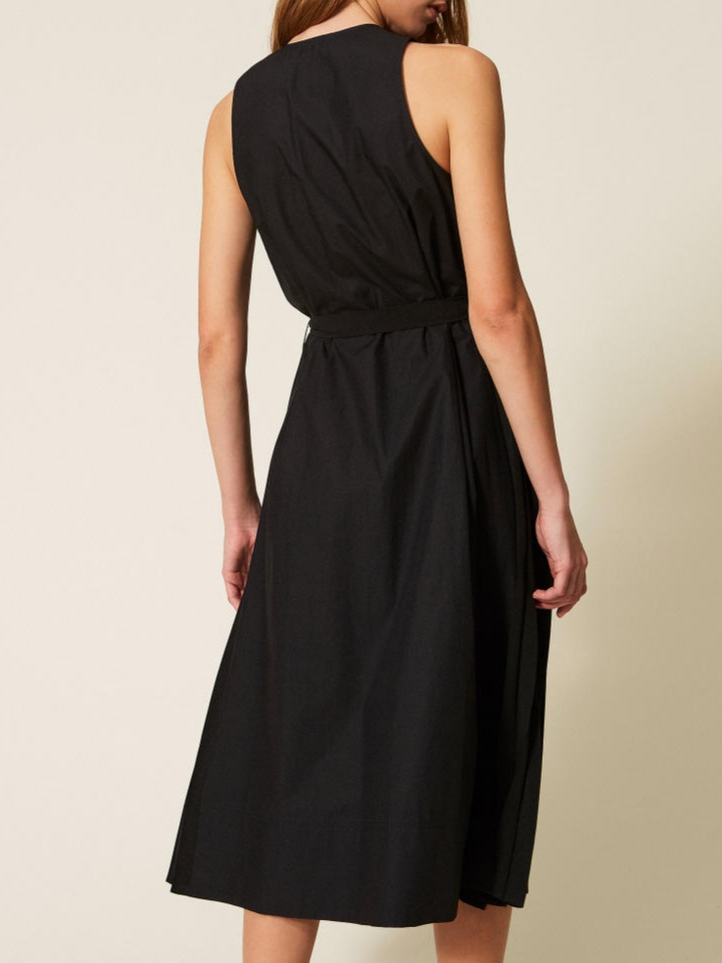 Φόρεμα Twinset απο ποπλίνα και Crepe de Chine. Λαιμόκοψη V, αποσπώμενη ζώνη και σκίσιμο μπροστά. Φαρδιά εφαρμογή.