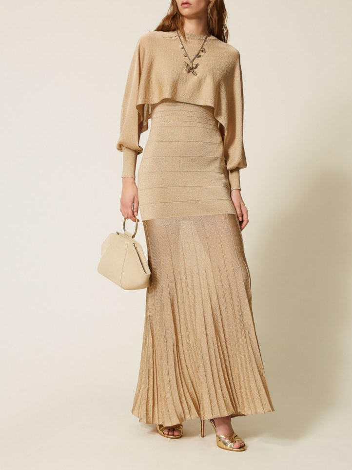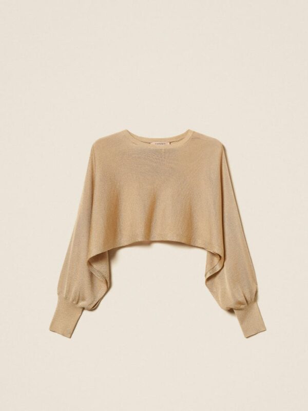 Cropped πλεκτό Twinset απο βισκόζη με lurex. Στρογγυλή λαιμόκοψη, μακρυά φαρδυά μανίκια με μανσέτες. Φαρδυά εφαρμογή.