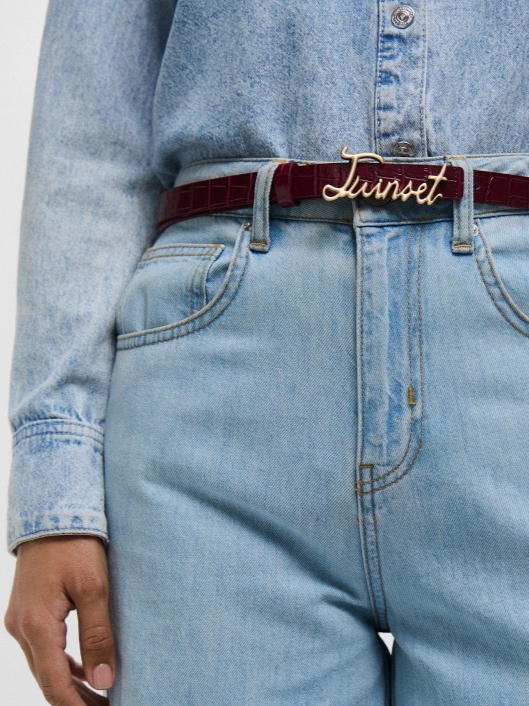 Δερμάτινη ζώνη Twinset κροκό με μεταλλική αγκράφα με το λογότυπο.